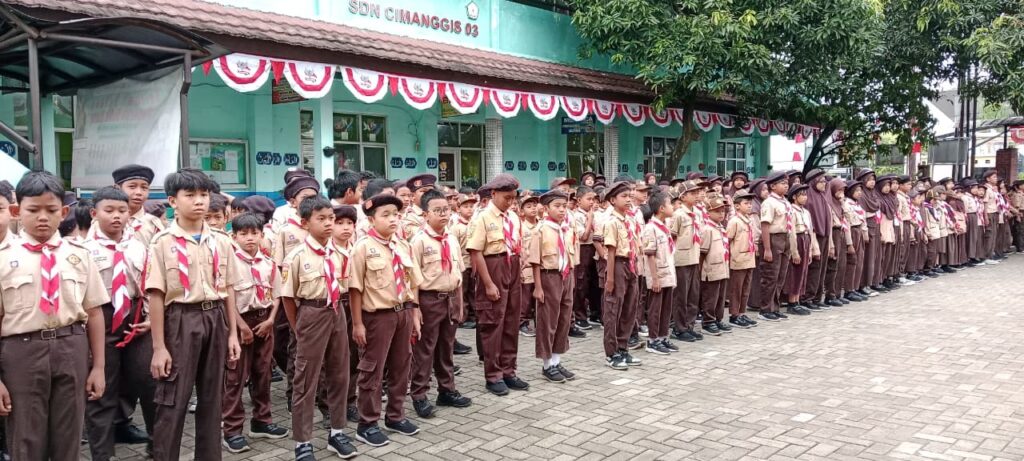 Bojonggede – Pertama kali SDN Cimanggis 01 dan SDN Cimanggis 03 menggelar upacara bendera bersama dalam rangka memperingati Hari Ulang Tahun Pramuka ke-64 pada Kamis, 14 Agustus 2025 di lapangan sekolah. Upacara berlangsung khidmat dengan diikuti oleh seluruh siswa, guru, dan tenaga kependidikan, khususnya anggota Gugus Depan SD Negeri Cimanggis 01, dan SD Negeri Cimanggis 03 Bojonggede.